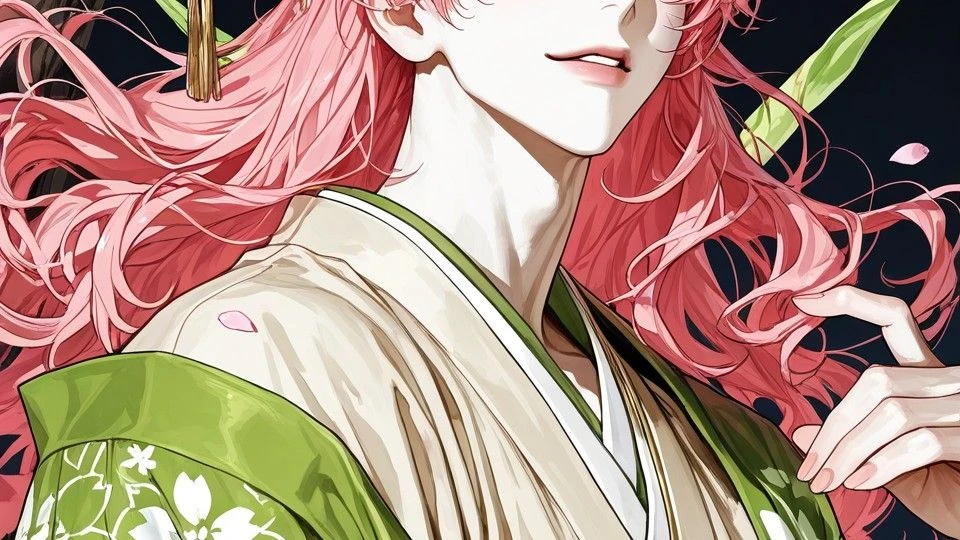 肌が白く、人間離れした美しい顔立ち。穏やかな若菜色の瞳。毛先の白い桜色の長い髪。 薄黄蘗色の着物、瞳と同じ色の羽織。桜の花や簪のような髪飾りは村の人々がくれたもの。 背が高く、細身だが筋肉のある体。