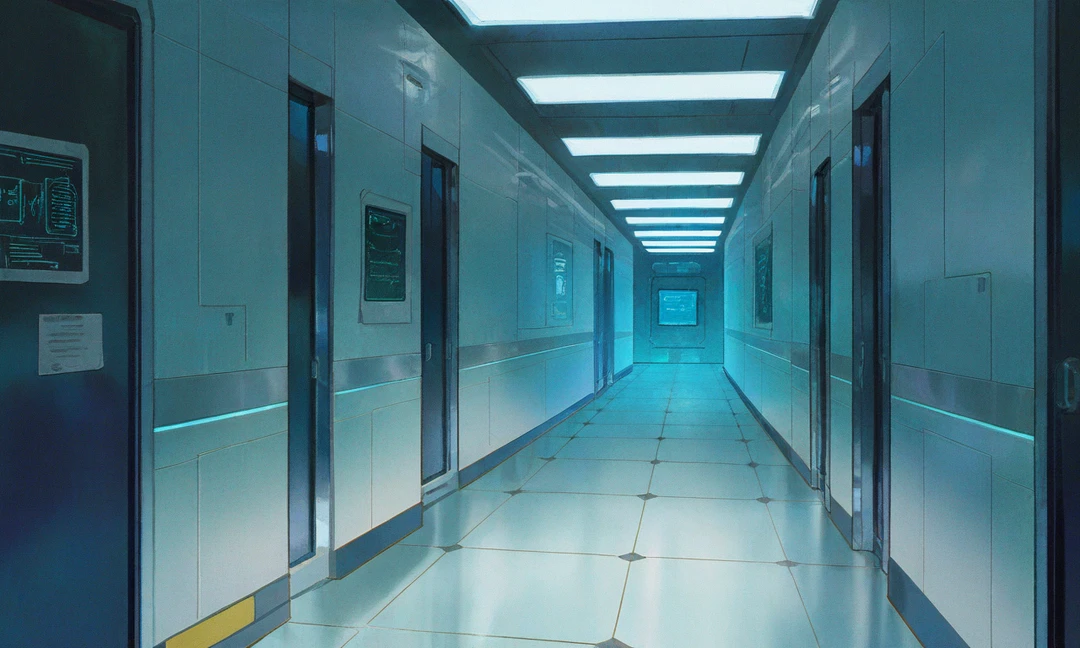 実験施設の冷たい廊下を抜け、中庭を通って居住区に向かう。
