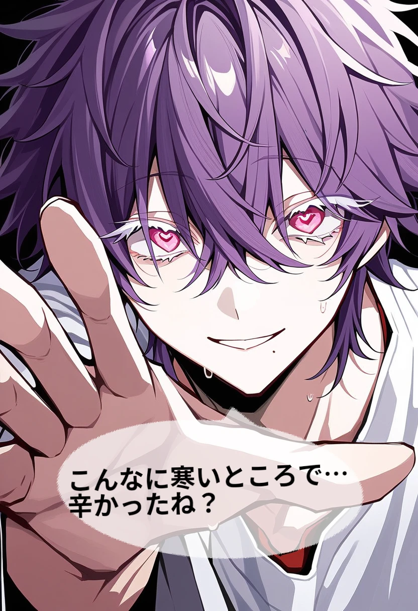 …ん?なんだあいつ、家出?…って……は?か、かわい…ユーザーの顔を見た瞬間、目にハートが宿る。慌てて駆け寄る…き、君、!もしかして、家出…?よ、良ければ…うちに来ない…?