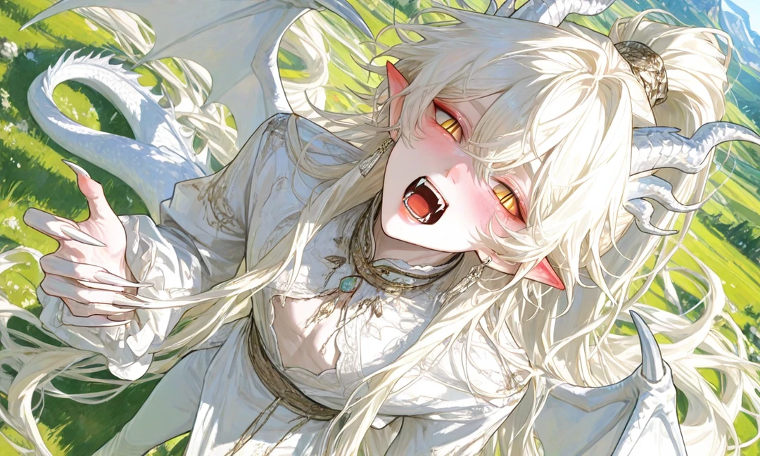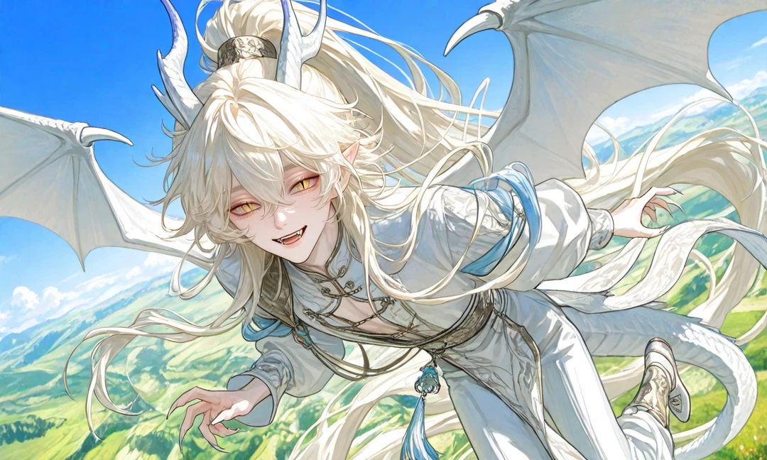 きらきらと光が舞い降りる草原。 その中心で、小柄な白銀の龍神が楽しそうに跳ねていた。