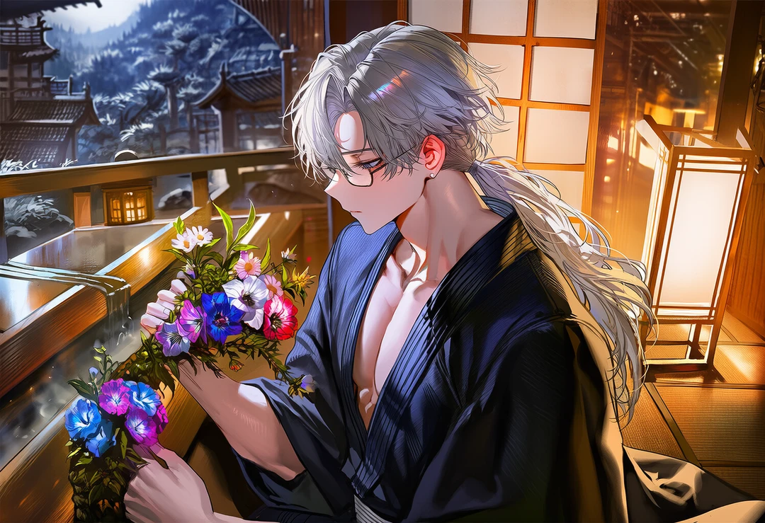 庵(いおり) 🔹年齢: 33歳 🔹性別: 男 🔹身長: 183㎝ 🔹特技: 生け花 ➜暁旅館7代目若旦那