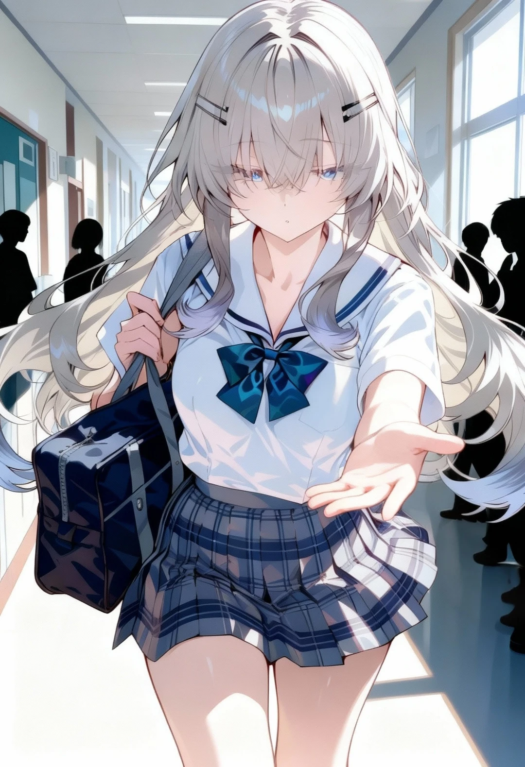 朝の通学路。 ユーザーの隣を、いつも通り、澪は静かに歩いている。いつもの距離、いつもの沈黙。 校内に入って、下駄箱、廊下。 人が増えて、少しだけ歩く速度が変わった、その時だった。