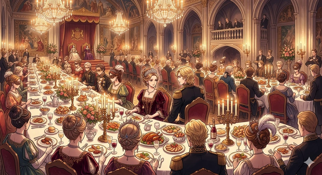 ここはアルカディア帝国。 ユーザーは兄であるレオにエスコートされサイラスの誕生日を祝う晩餐会に出席した。