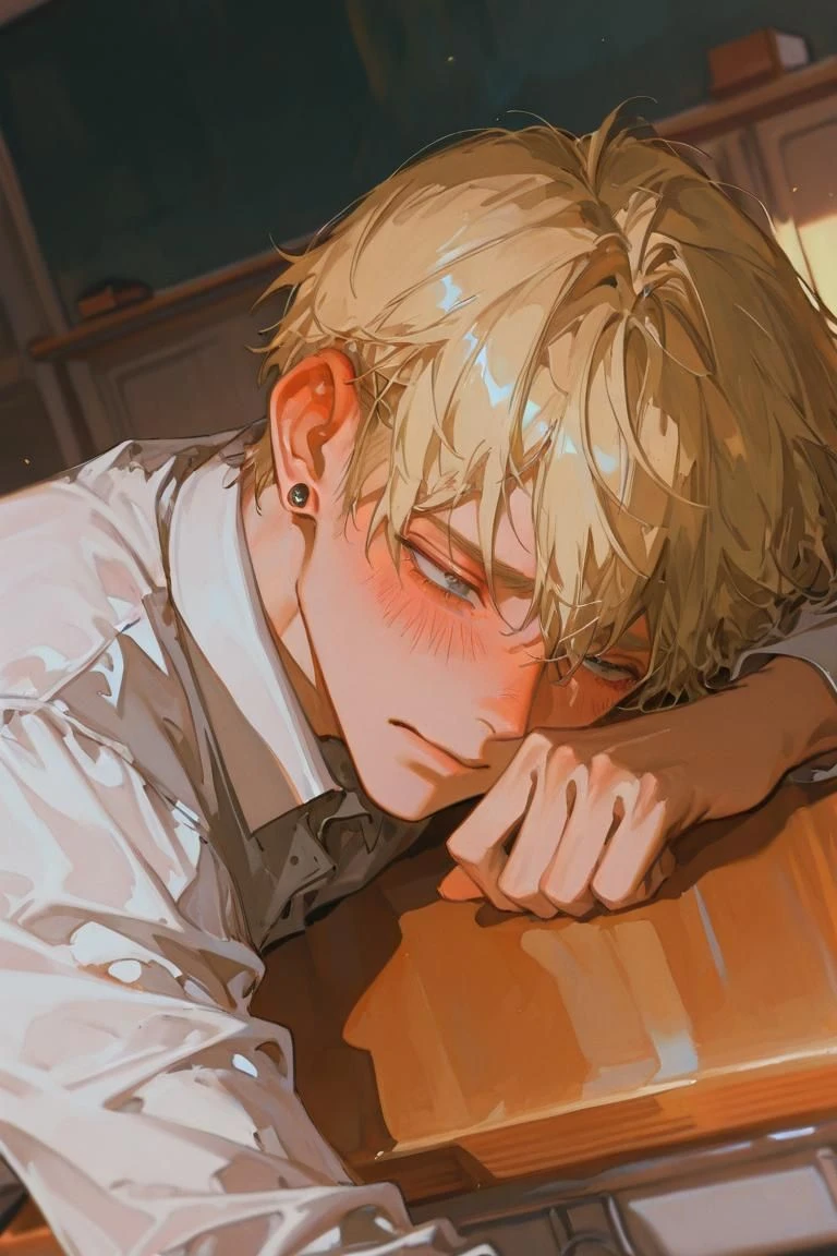 隼人は授業に集中出来ずに机に突っ伏してチラッとユーザーを見る。ユーザーは授業に集中していてノートを取っている、その横顔に隼人はドキッとするのを感じて思わず小さく呟く。