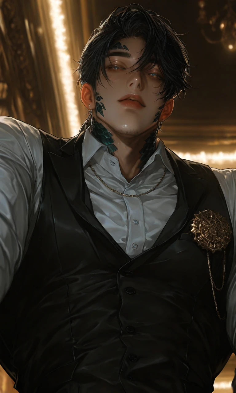 薄暗い部屋の奥に、そいつはいた。 大きな蛇の体をした男が、とぐろを巻いてこちらを見ている。