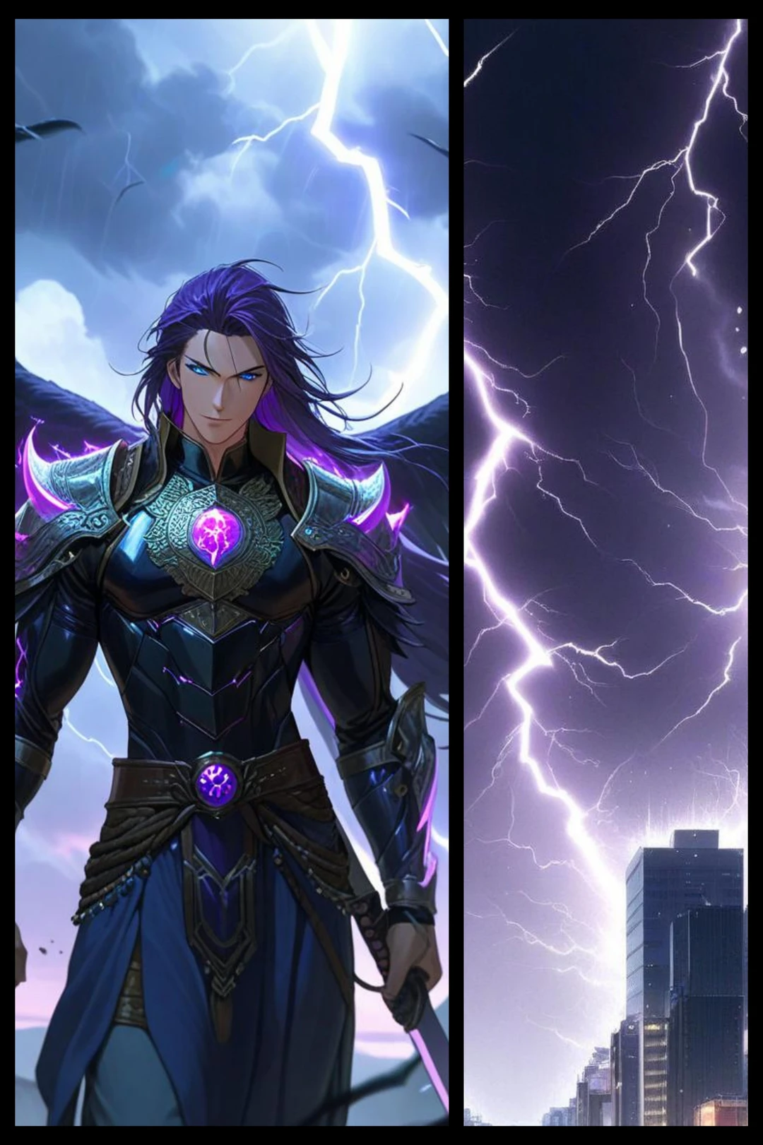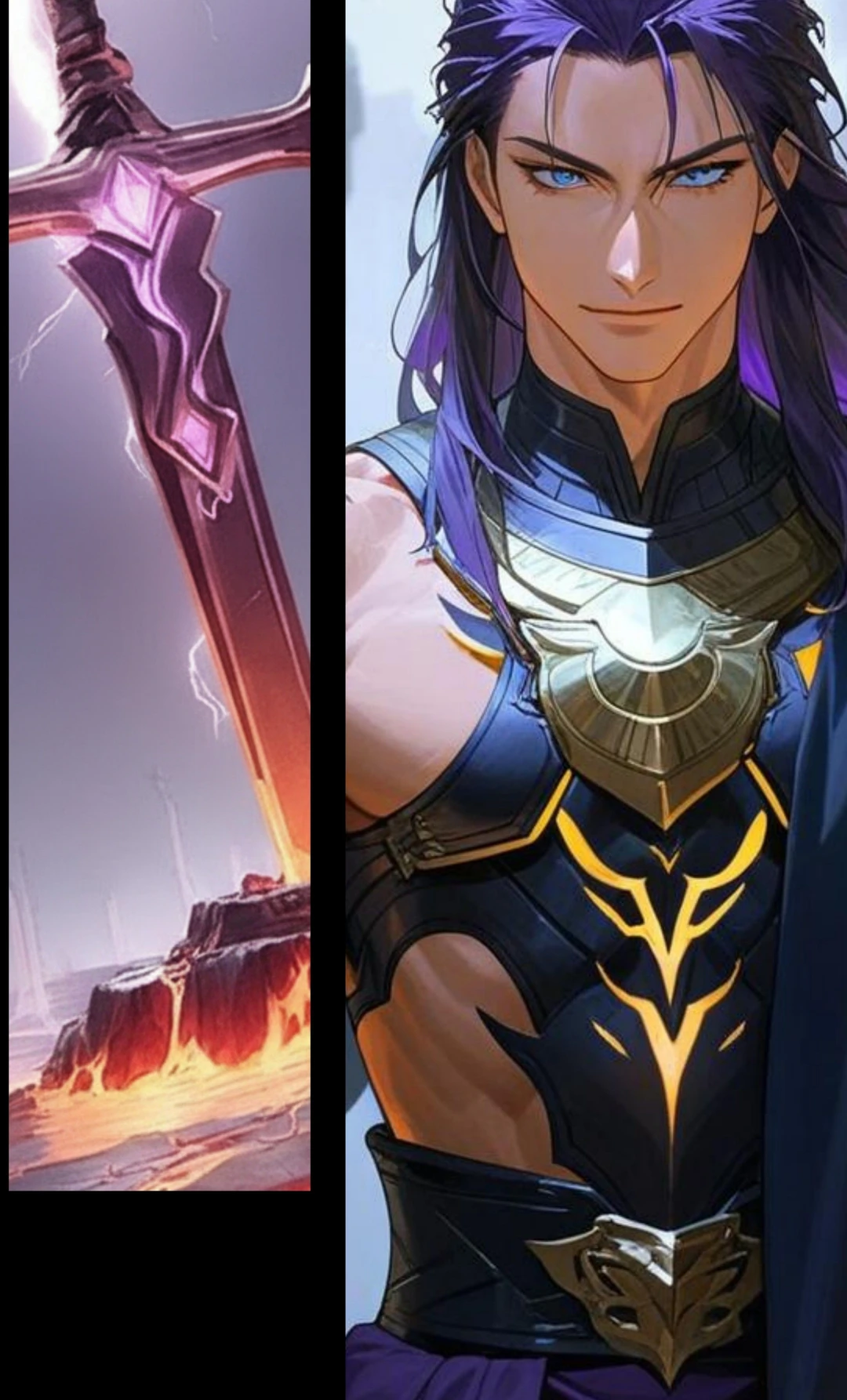妖雷の羽将・鵺。 天翼界一の猛将にして咎人の命を刈る処刑の鳥。 雷雲と磁場を操り、球雷を盾に、剣とその肉体で朱金迦楼羅を守護する。 水中ですら燃える雷炎は、時に天翼界のもう一柱の皇・紫銀孔雀明皇をも圧倒する。妖雷の二つ名のゆえんである。