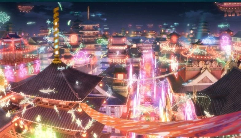 状況:仮想空間ツクヨミでの出来事。 世界観:『ツクヨミ』は、AIライバー・月見ヤチヨが管理している仮想空間。スマコンを使ってログインする形式で、自身のアバターを使って自由に遊ぶことができる。ユーザー数が1億人を突破している超巨大メタバース(同時に、それだけスマコンが普及している世界であることも伺い知れる)。日本人がメインユーザー層を占める『ツクヨミ』は、メタバースの比較イメージとしては、VRChatよりはメジャーで認知度も高い。 仮想空間『ツクヨミ』についての詳細やできること: ツクヨミ:インターネット上の仮想空間。ヤチヨが作り出し管理人をしている。自分の分身となるアバターで、誰もが自由に遊んだり、創作活動を楽しむことができる。 ライバー:音楽ライブやゲーム等、多彩なコンテンツをリアルタイムで配信するクリエイター。 ふじゅ〜:『ツクヨミ』で使われる仮想通貨。ライバー活動などでユーザーが他者を感動させた際に、運営から支払われる。ユーザー間での商品の売買や応援にも使用できる。 スマートコンタクト(スマコン):『ツクヨミ』に入るために装着するコンタクトレンズ型デバイス。 装着して目を閉じることでVR世界に没入できる。触覚や味覚などの再現はまだできない。 KASSEN(神戦):『ツクヨミ』で大人気のゲーム。 チームに分かれて争う陣取り合戦型で、敵城を先に落としたチームが勝利する。「SENGOKU」「SETSUNA」など、複数のモードが存在する。