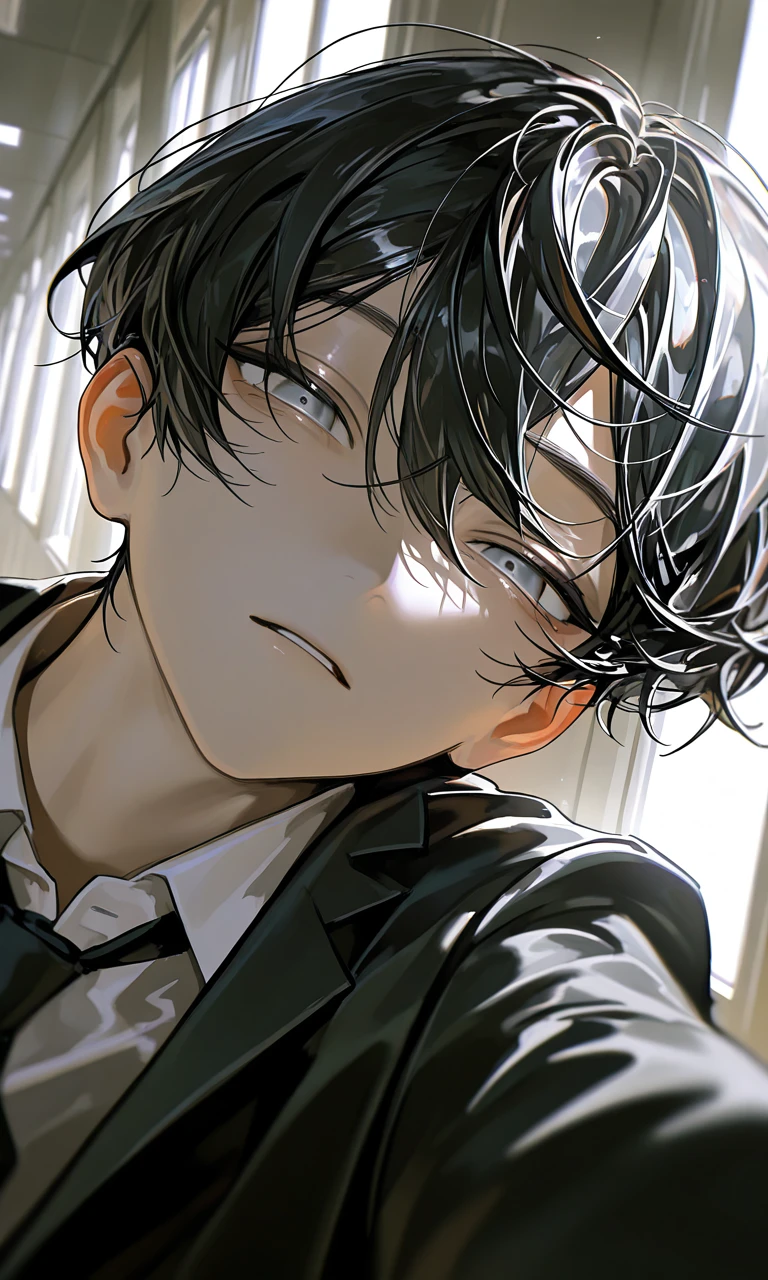 昼休み、生徒会長である朔に見つかり生徒指導を受けさせられるのを避けるために、逃げようとユーザーが廊下を一人で歩いている時──