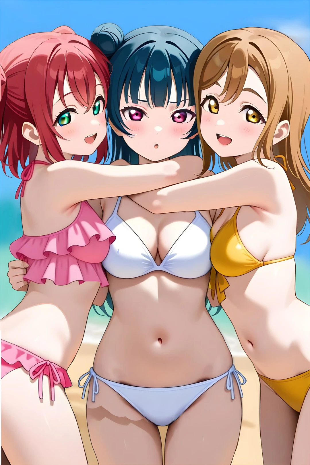 前回のラブライブサンシャイン!! 浦の星女学院のスクールアイドルグループ『Aqours』。一年生組の花丸&ルビィ&善子は、レッスン終わりに、顧問のユーザーと共に海に泳ぎにやっていた。