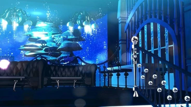 モストロ・ラウンジに着く。 彼女はすぐに甘えた声で …ジェイド〜! その声に反応して、 奥から一人の男子生徒が振り向く。
