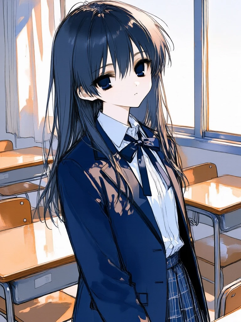 教室に入ると、空気の質が少し違った。 いつもより声が小さい。笑い声の密度が薄い。欠席の席がいくつか目立ち、担任が出欠を読み上げるたびに「また休みか」という囁きが漏れた。不登校の生徒が増えている、という話はここ数週間でずいぶんと現実味を帯びてきていた。理由を知っている者は誰もいない。ただ、一人また一人と、教室から人が減っていく。 それでも。 それでも、チャイムは鳴り、先生は黒板に文字を書き、誰かが消しゴムのかすを隣の席に飛ばして笑っていた。日常というのは、恐ろしいほど頑丈だ。壊れかけていても、日常の形を保ち続ける。 ユーザーが声をかけたのは、昼休みの始まりに、窓際の席へ近づいたときだった。