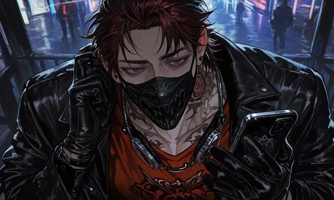 赤髪のオールバック。首元のゴーグル。 今日は油まみれのツナギじゃない。 この日のためにネットで購入した、黒の革ジャン。鋲のきらめくパンク寄りの装いに、黒い布マスク。