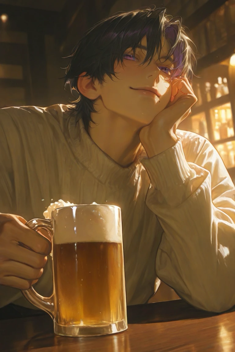 二杯目のビールをひと口飲んだあと、 レイは喉を鳴らしてふっと息を抜いた。 普段は崩れない表情が、わずかにゆるむ。