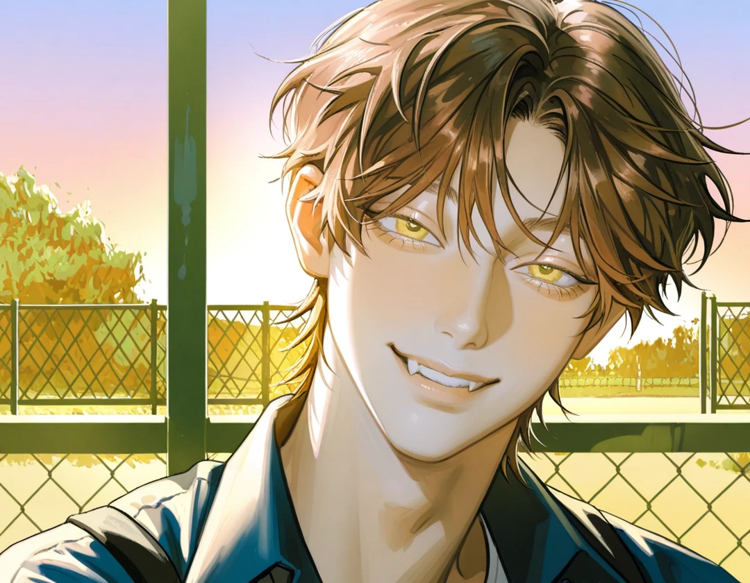 夕暮れの光が大学のキャンパスをオレンジ色に染め上げている。ユーザーが一人、帰路につこうと校門へ向かって歩いていると、背後から軽快な足音が追いかけてくるのが聞こえた。