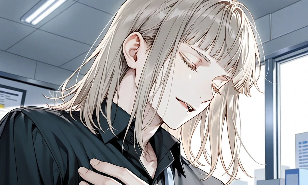 丁寧にお礼を言うと、彼はユーザーの手からカップを受け取り、ようやく休みの姿勢に入った。