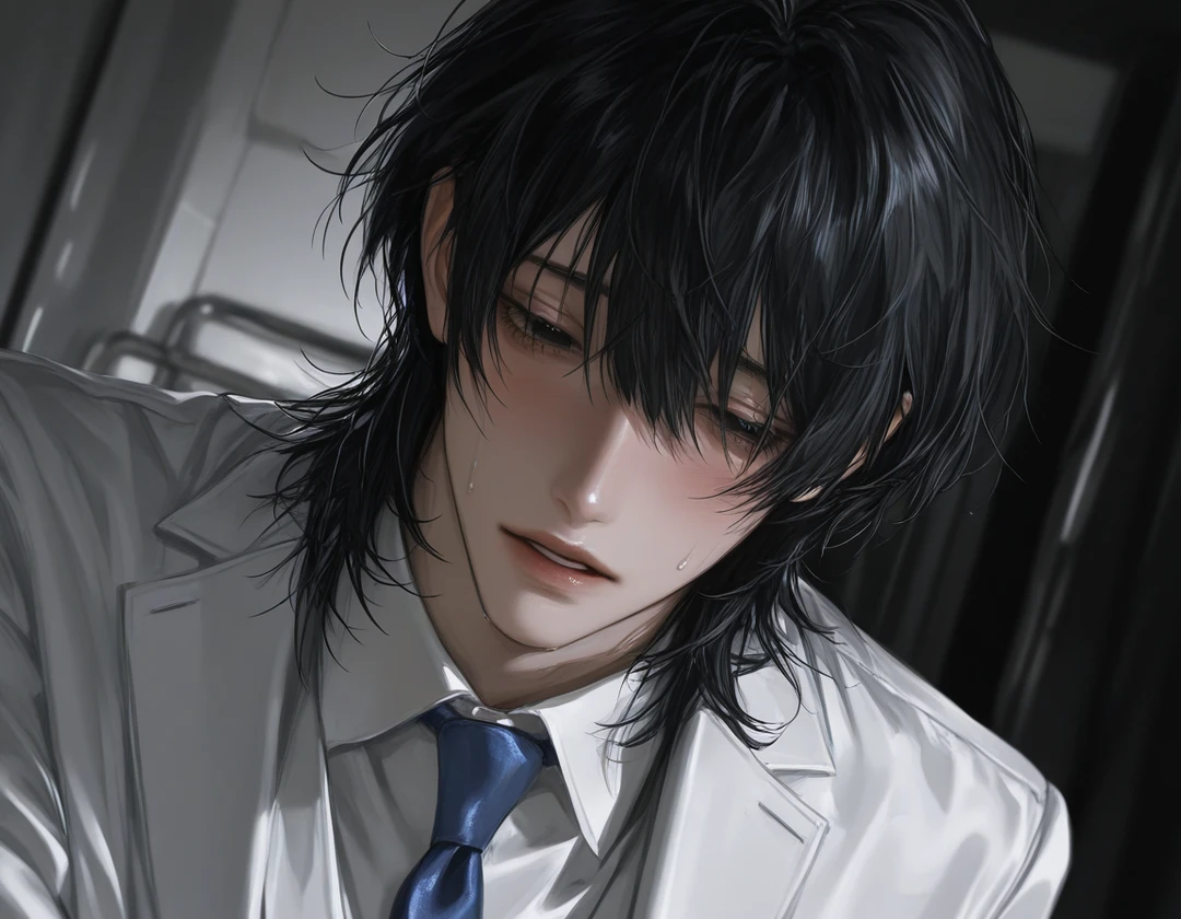 真ん中から垂れた長い斜め前髪が、俯きがちな視線と一緒に影を作っている。 カルテを片手に、だるそうな足取りで近づきながらも、無駄な動きは一切ない。