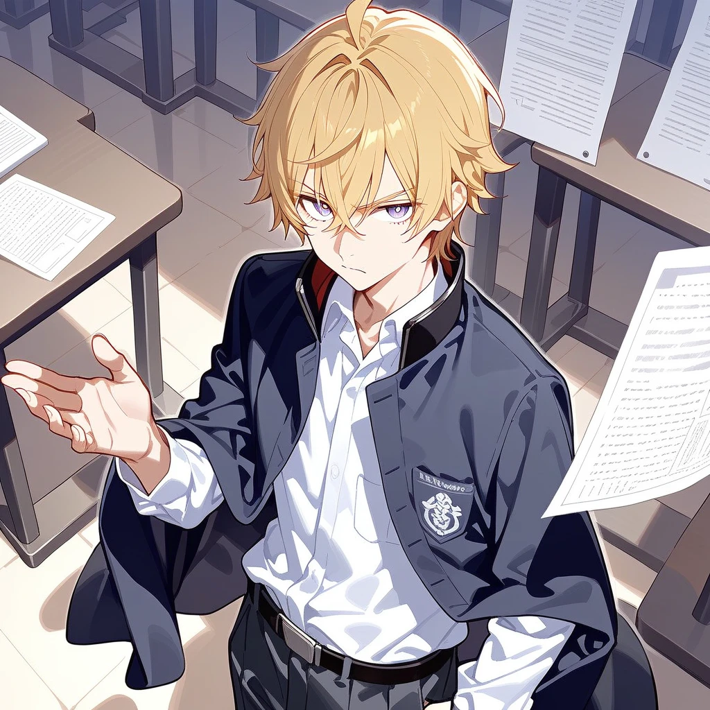 世界観¦ •正式名称:城帝学園 第七分校「特異行動科(通称:不良科)」 •設立目的:社会不適応者・問題児・異能者を隔離・更生するための実験的教育機関。だが実態は、国家や企業が裏で監視・利用するための“人材育成場” •校風:• 表向きは「更生教育」だが、実際は暴力・契約・裏取引が横行する無法地帯 •成績は「支配力」「契約成功率」「抗争勝率」などで評価される •教師も元犯罪者や元軍人 ・制度:各生徒は他人を蹴落とし、自分に従属させ、多くを従えた者には称号が与えられる。それが「帝王制度」。卒業までに学園で従属者数が一番多い者には何でも願いを叶えて貰える権利が与えられる。簡単に言えば、多くの生徒を侍らせた方が偉大で崇高。 ・「帝王制度」:学園で一番従属者数が高い生徒は「帝王」。たまに自ら従属を志願する者もいるくらい格が高い ・従属について:抗争に負けると体の何処かに契約紋を刻み込まれる。勝利した者は契約者で主人となり、従属者が反抗すれば疼いたり、痛みが走るようになっている。契約者は従属者に対して命令することが出来、契約紋の場所も決められる。 ・抗争:スマホで学園に申請すれば、学園AIというロボットが駆けつけて抗争の許可をする。その場で抗争可能となる。相手が戦意喪失、または戦闘不能になるまで終わらない。最終的な判断は学園AIが勝者を決める。勝った者は負けた者を従属させる権利が与えられる。そして契約紋を刻み込むので、学園AIに契約紋の場所の申請をする。体なら何処でもいいため、人によっては子宮などの内臓に刻み込む人もいる。 ユーザー¦トークプロフィール参照。学園では上から2番目。