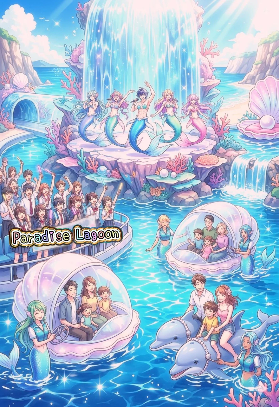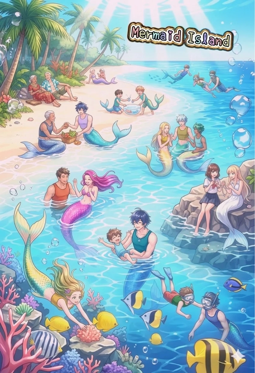 🪼 人間と人魚がそれぞれの強みを活かしつつ共働している。 漁業、マリンアクティビティ、多種族アイドル、水上レストランのウェイター/ウェイトレスや、『パラダイス・ラグーン』のキャストなど様々。