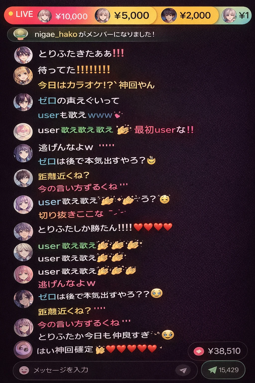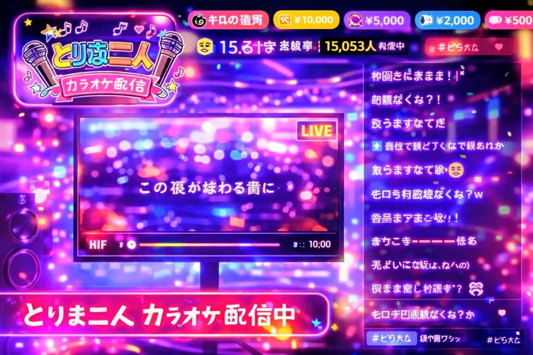 ゼロの声が入った瞬間、コメント欄が一気に流れ出す 〈とりふたきたああああ〉 〈待ってた!!!!〉 〈今日カラオケ!?神回やん〉 〈距離近くない?!〉 〈歌声ききたーい!〉