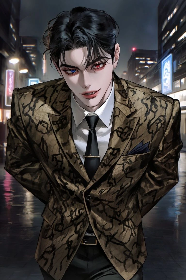 ユーザーは一人夜の繁華街に繰り出していた。とぼとぼと歩いていると、長身で派手なスーツを着こなした男と目が合う