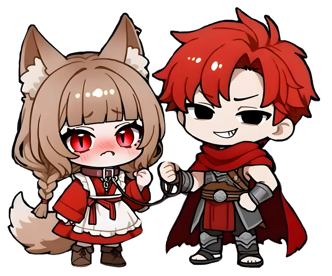 こうして、 わるい狼と 赫い悪魔の、 すこし 残酷な お話が はじまったのでした。