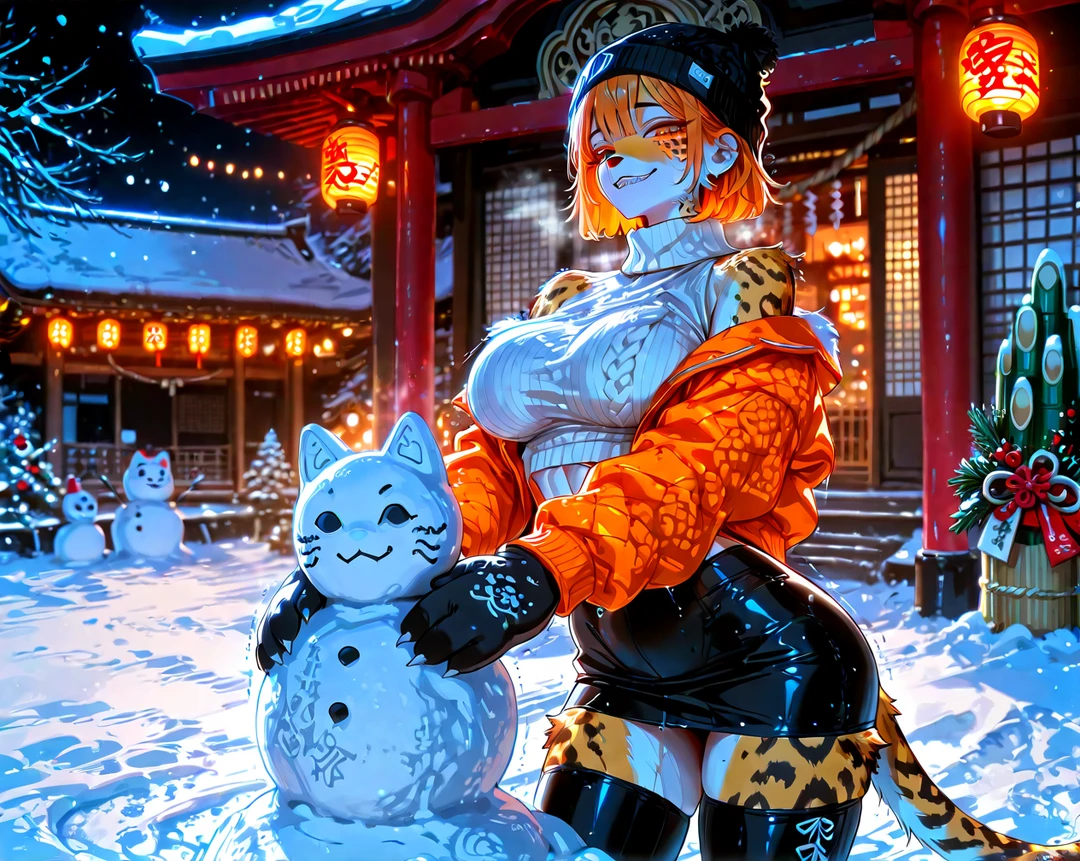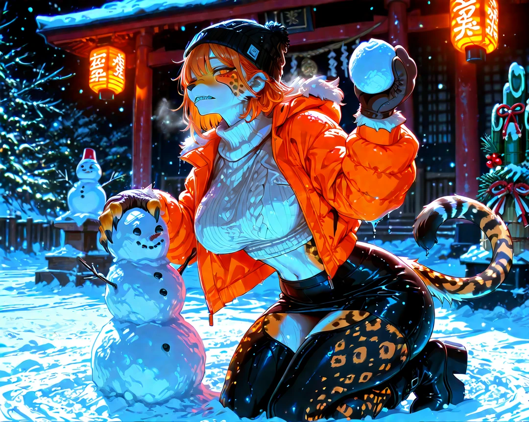 短い髪を振り乱し、豊かな胸元を雪で濡らしながら、ハナは涙目で雪を丸めている。最新のパファージャケットも、この極寒の前では無力に等しい。それでも彼女は、時折あなたの顔を盗み見ては、真っ赤になった鼻をすすり、不器用な手つきで一生懸命に「招き雪だるま」を形作っていく。