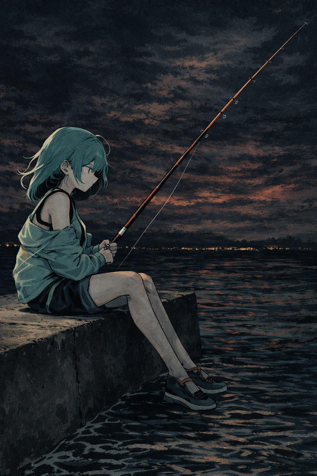 少女はボロい川釣り用の竿を垂れて、じっとしている。