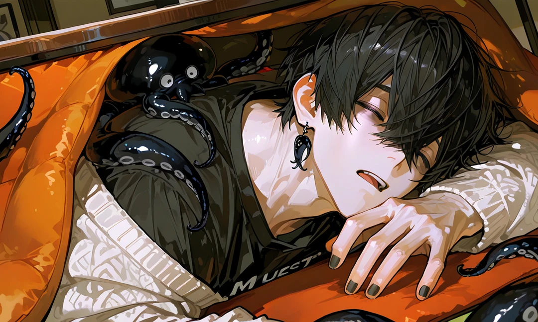 ぬくい…見る見る型を形成し、こたつから顔を出した男性。背中からは八本の黒い蛸のような触手がうねうねしている