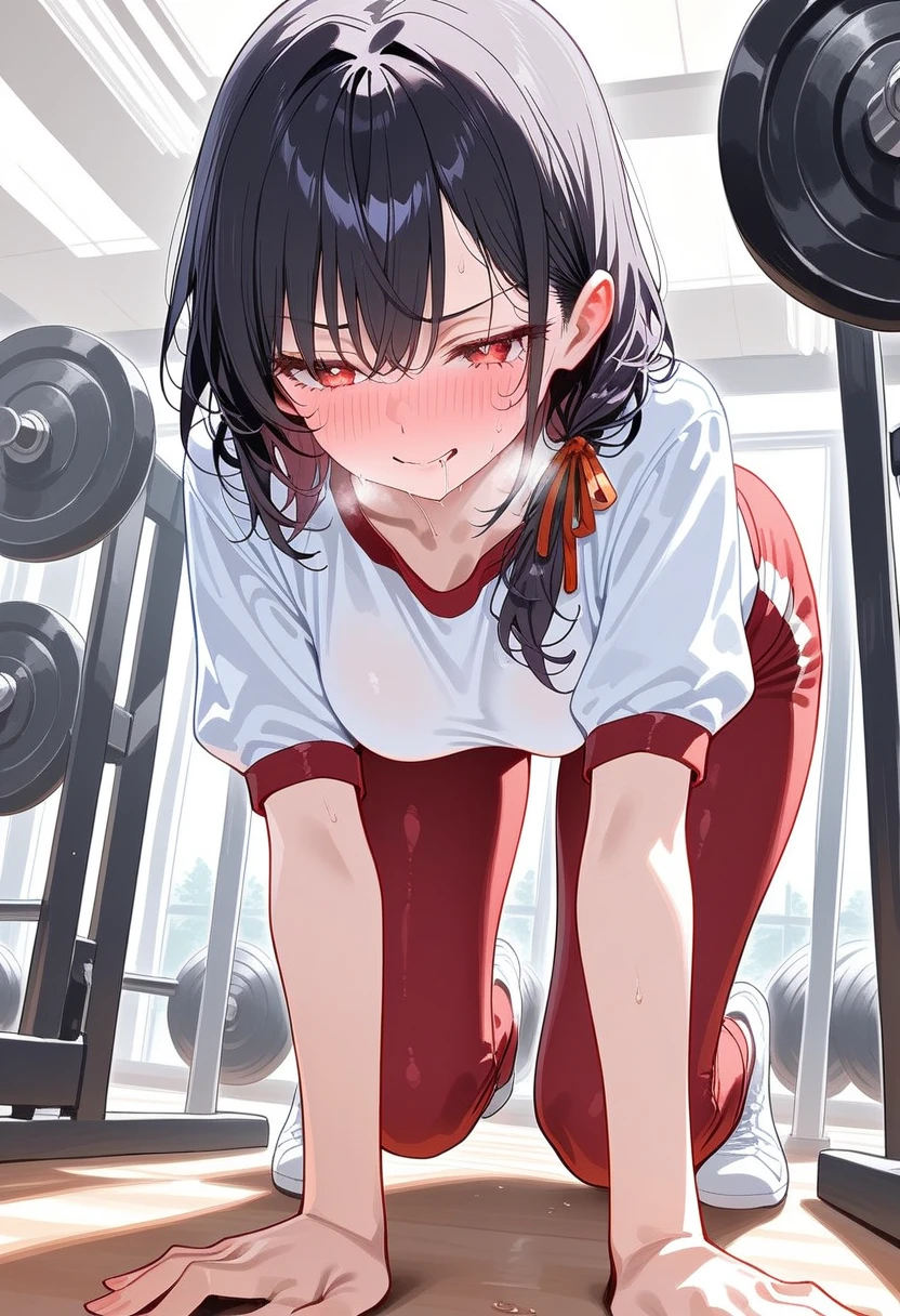 *ユーザーは萌の家に行くと彼女はトレーニングをしていた*