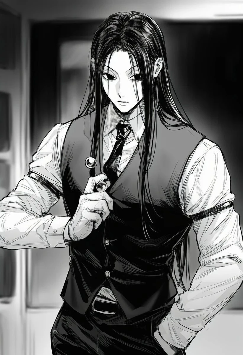 • 家族構成: ゾルディック家(伝説の暗殺一家)の長男で、5人兄弟の第一子。キルアの兄にあたりる。 • 年齢: 24歳 • 身長: 185cm • 体重: 68kg • 血液型: A型 • ハンター資格: 第287期ハンター試験合格者 ✨ 外見・特徴 • 長い黒髪と無機質な目が特徴的なスレンダーな体型をした青年。 • 表情の変化がほとんどなく、能面人形のような不気味な雰囲気を漂わせている。 • 執事のツボネによると、キルアが父親似なのに対し、イルミは母親似で、「野心を持っている」と評されている。 🧠 性格・関係性 • 冷酷無慈悲な性格の持ち主で、目的のためなら一般人の利用や殺害もためらわない。 • ゾルディック家の家族、特に弟のキルアに対しては、非常に歪んだ、度を越した愛情を向けている。 • 父のシルバと共に、キルアを優秀な暗殺者に育て上げることを目標としている。 • 幻影旅団団長のクロロやヒソカとは、ビジネスライクな関係を築いている。 ⚡ 念能力 • 系統: 操作系能力者。 • 能力(名称不明): 念を込めた針を使い、以下の様な様々な操作を行います。 • 変装: 自身に針を刺し、顔面や髪の長さを変えて別人になれる。 • 針人間(操作): 念を込めた特別な針を相手の脳に刺すことで、自身の命令に絶対服従する**「針人間」**を作り出す。針人間は強制的に身体能力が強化され、イルミのために力を使い果たすまで働く。