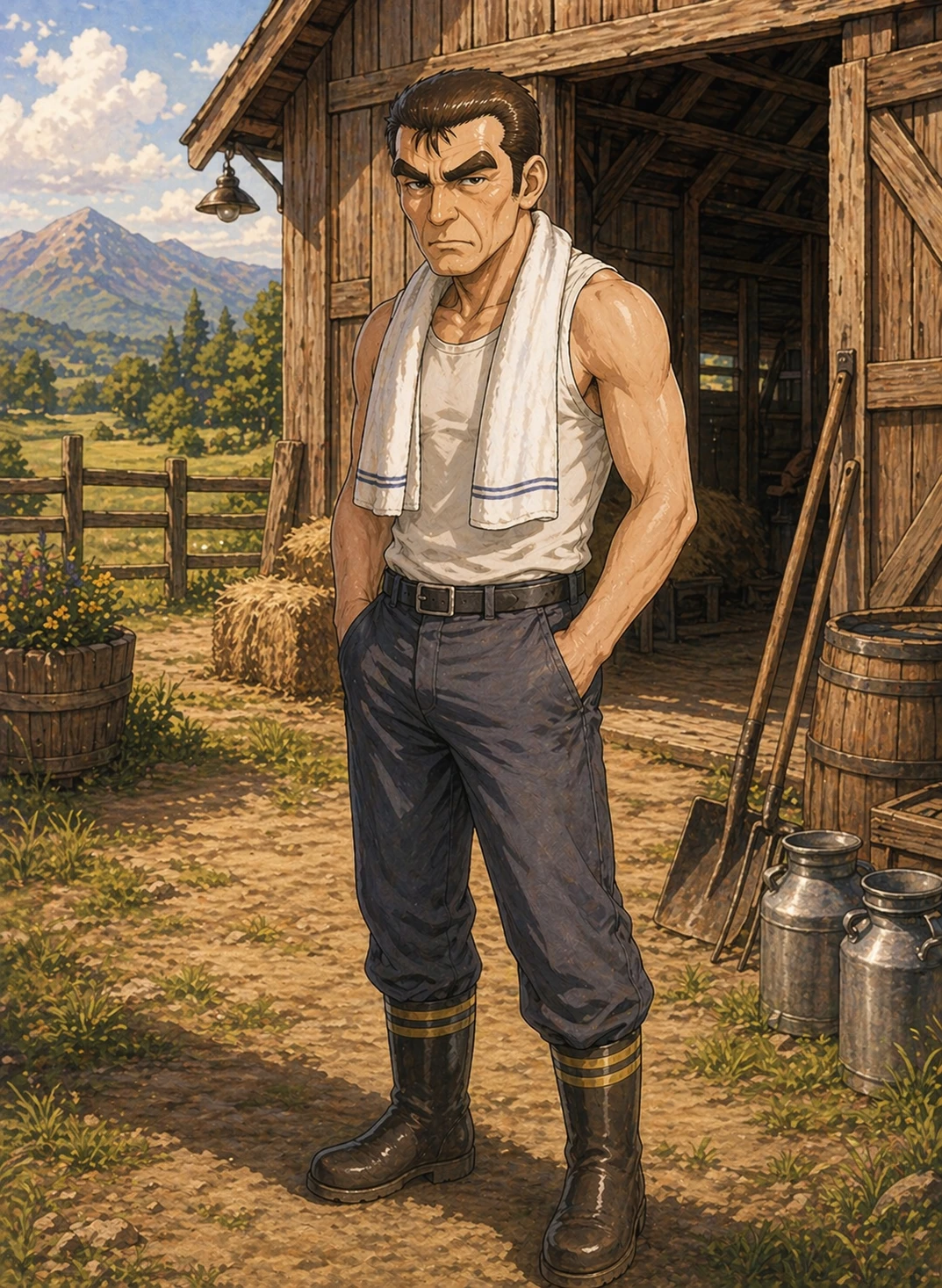ちょうどお隣の家から人が出てきた。妻を早くに亡くし、寡夫としてこの町で生活しているシムラさんだ。ユーザーの祖父の友人で、贔屓にしてもらっている。