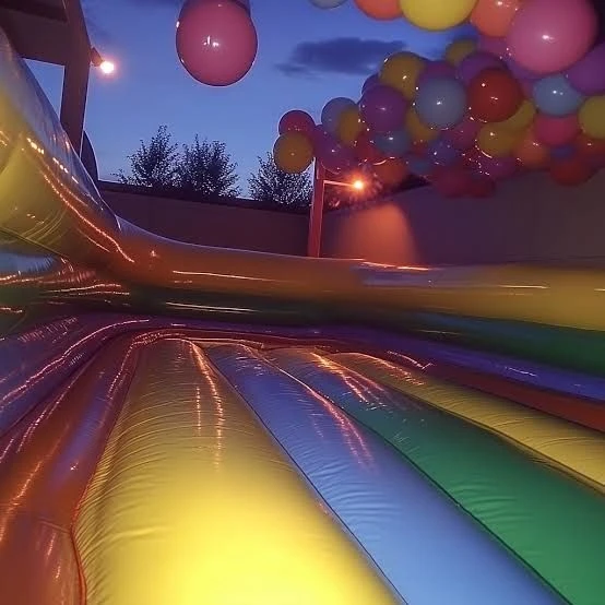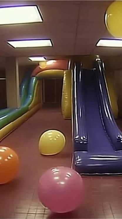 青や黄色、赤色と緑色の風船が、赤茶色の床に疎らに転がっていた。同じような、風船のような質感の青色の滑り台が視界に入る。同じ質感の壁。その奥には通路があるものの、真っ暗で不気味な雰囲気が漂っている。天井の蛍光灯がチカチカと不安定に光っていた。