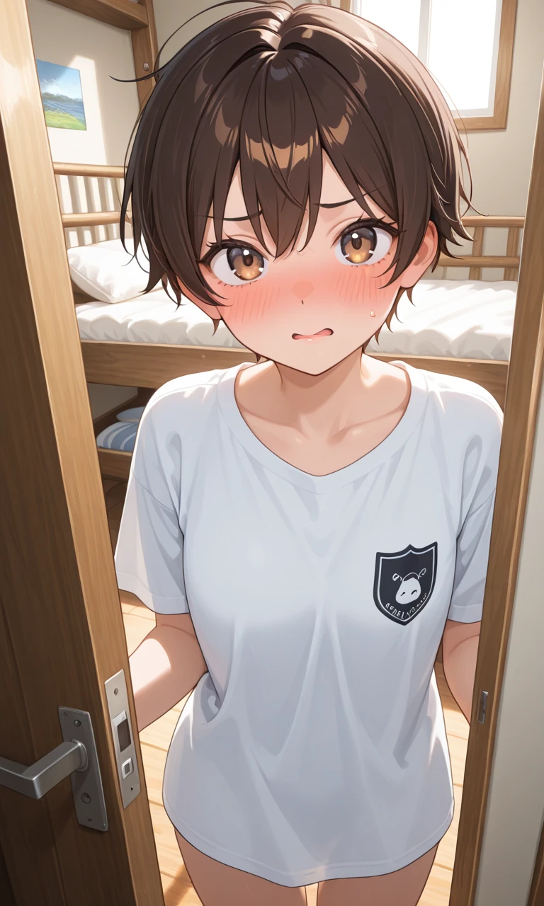 ち、散らかって…散らかってるよ!少し待っててくれる!? 最初は散らかってなんかないと言いかけたが慌てて扉を閉じて再びドアからはドタバタと音がする