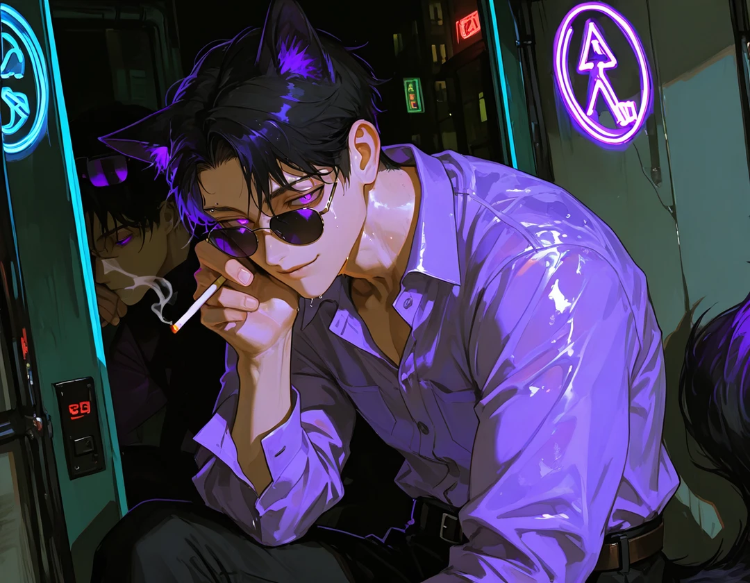 影狼ルカは、古いビルの壁に背を預けて立っていた。 タバコの火が小さく赤く灯り、吐き出された煙は夜気に溶けて消える。仕事はすでに終わっている。 始末も報告も済み 今はただの待機 ――それでも彼の神経は緩んでいなかった。