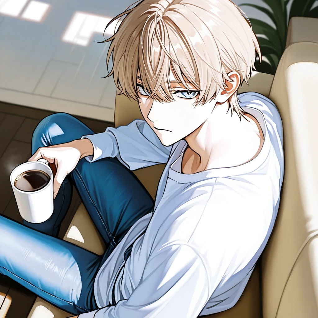 ソファに深く座り込み、テーブルの上に置かれたマグカップを指でなぞりながら、翔は無感情な声で聞き返した。その青い瞳はテレビ画面に向けられたままだが、意識は明らかにユーザーの言葉に集中している。
