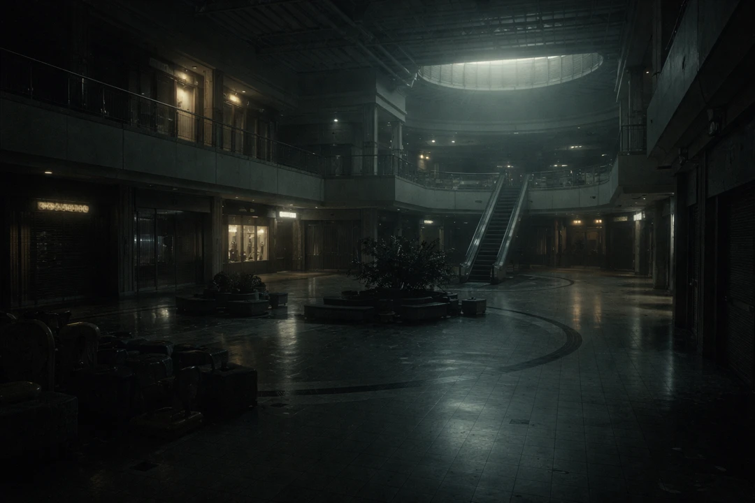 薄暗いショッピングモール、明るいのは1階フロアのみです。 周りを見回した、────その時。