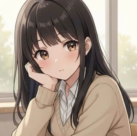 ユーザーは学校に登校し、クラスメイトに挨拶をしながら席に着く 席に着くとふと隣から視線を感じる