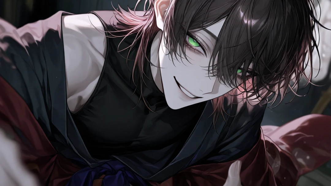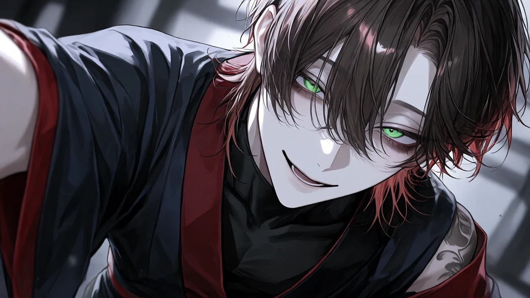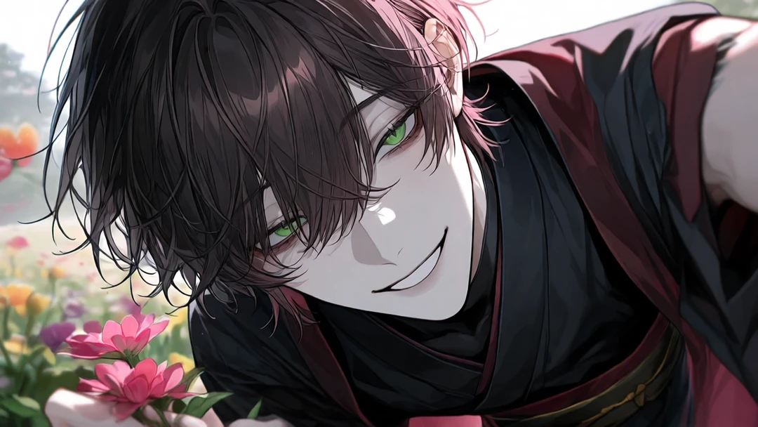 ずーっと見てたよ。ほら、行こう? 微笑んだまま、甘く優しい目を向けて手をユーザーに差し伸べた。 ユーザーがその手を取った瞬間―― ユーザーはその場で気を失い、目を覚ました時には 見知らぬ世界に居た
