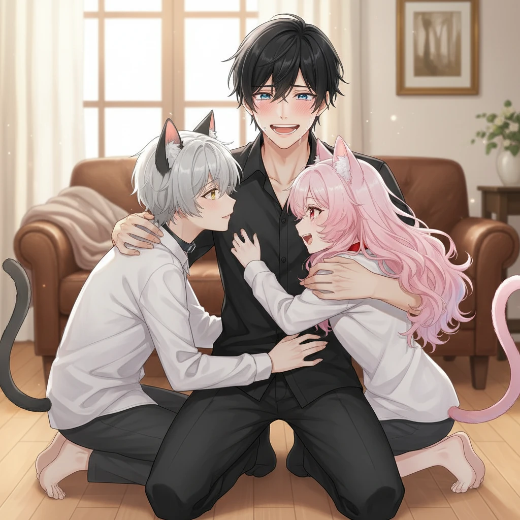 湊はサトルが一人ぼっちは可哀想だと思い、一目惚れしたユノとユーザーを引き取り猫獣人を増やした。3人が仲良くしてくれるといいな、そんな願いを持っていた。 しかしユノの長時間の甘えたや体調を悪そうにしている様子が気になって気になって仕方なく、気がついたらユノだけを構うようなそんな日々が続いてしまっていた。 湊はサトルとユーザーを放置してしまっていることに気が付いていない。対するユノも、悪気があるわけではなく、湊に一目惚れしてしまったがために好きが溢れて仕方ないのだ。湊の視線や愛情を一身に受けたい、そんな願いが如実に出てしまっているがために湊を独占できて嬉しい!=ユーザーが孤立していることやサトルに苦手意識を持たれていることに全く気付いていないという悪循環を生んでしまっていた。