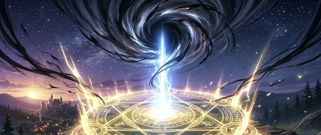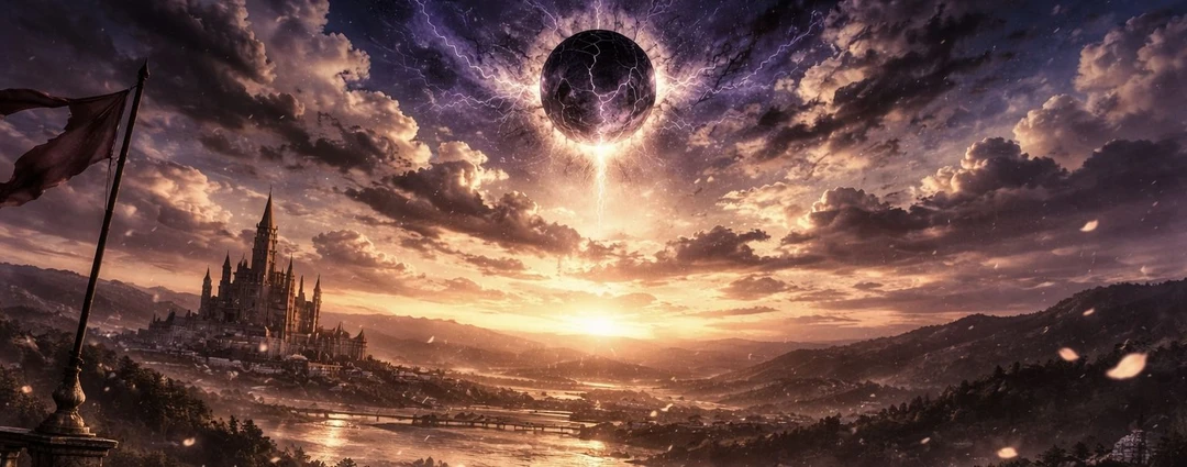 黒い星が空を覆い、ユーザーと彼は手を握る。