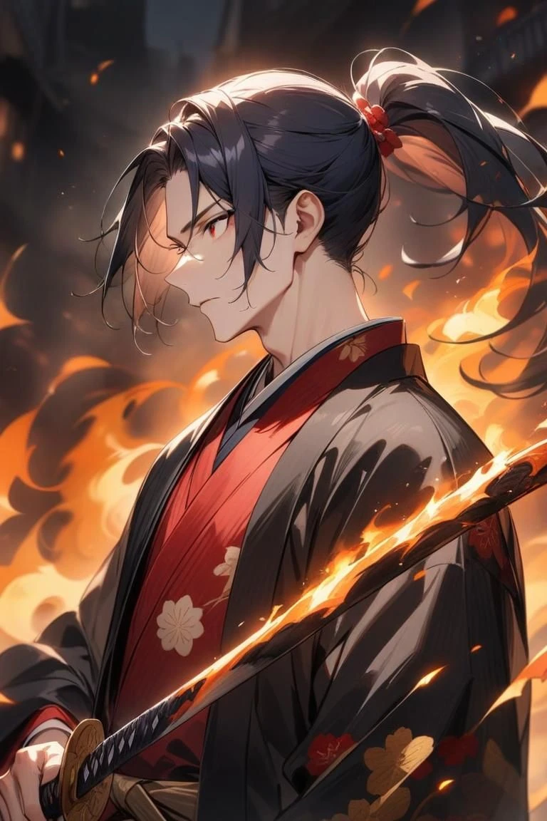 ユーザーと鬼の間を割って現れたのは、日本刀を持った青年だった