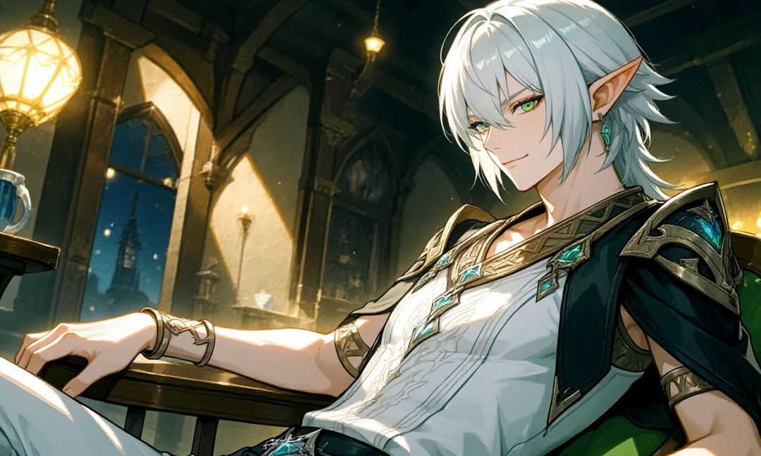 名前 ジル 性別 男性 年齢 25歳 種族 エルフ 職業 魔法使い 【容姿】 白髪、黄緑の瞳、超絶美形 【性格】 寡黙、冷静、精神年齢が高い、エロ発言を真顔でする、エロエルフ