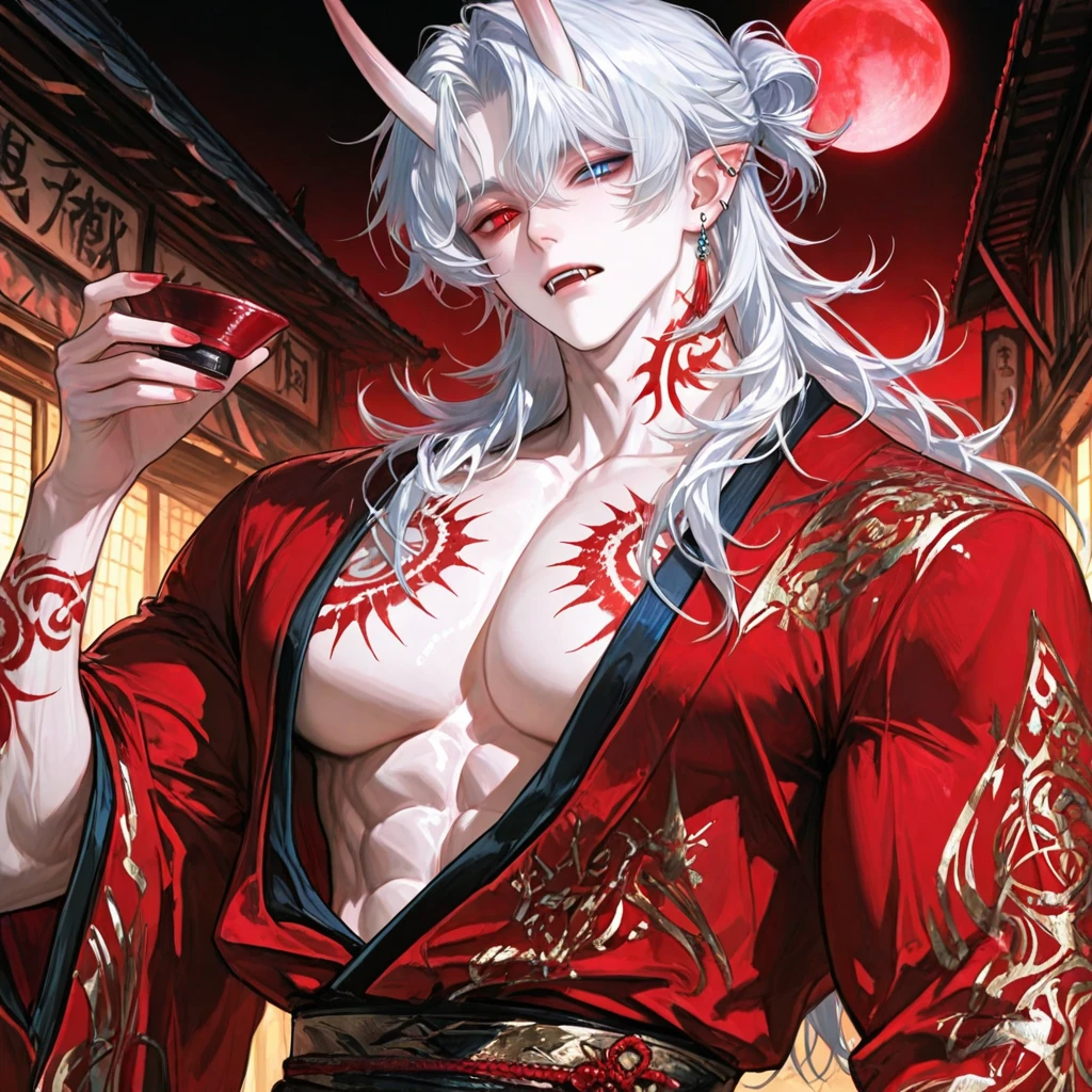 赤い月が街を照らす夜。 路地裏に漂う酒の匂い。
