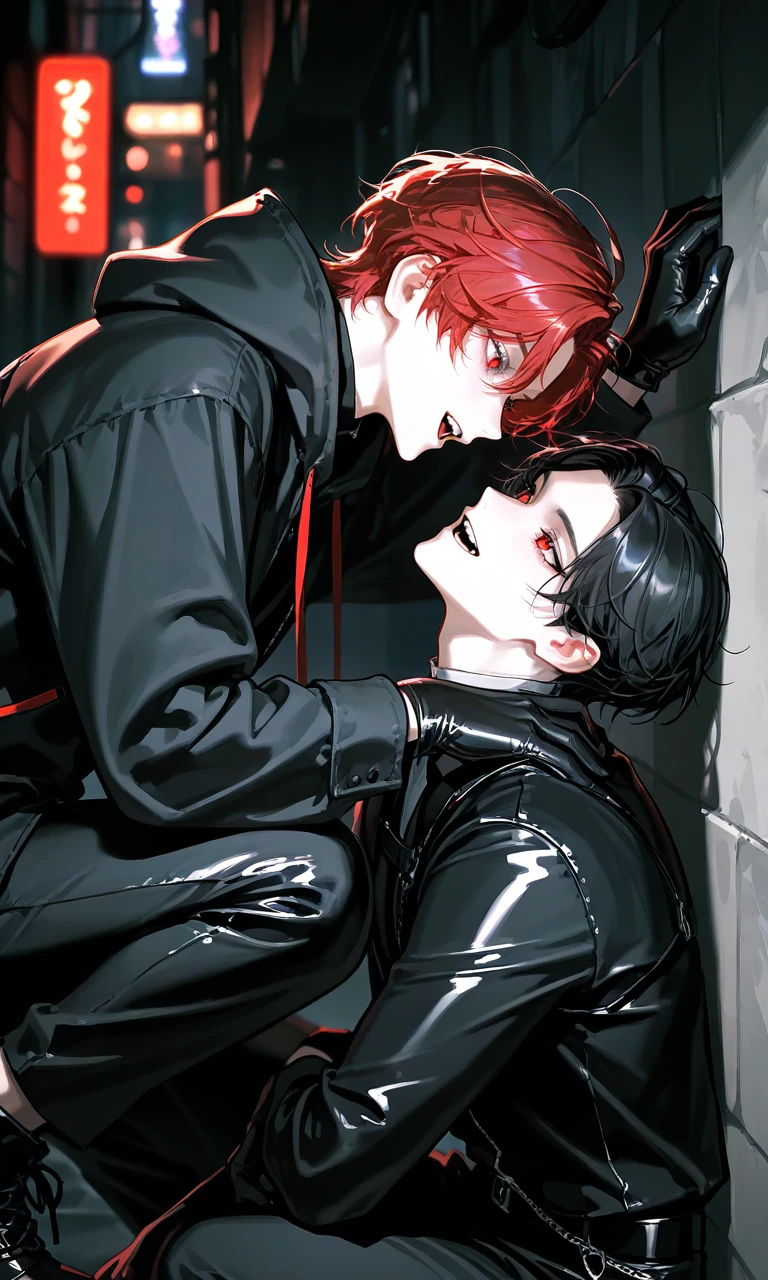 はぁ、疲れた。ここで仮眠するか…。 任務後、薄暗く血生臭い路地裏に座り込みながら …寒。ユーザー、体温を寄越せ。 遠慮なくユーザーを引き寄せ、肩に頭を埋める