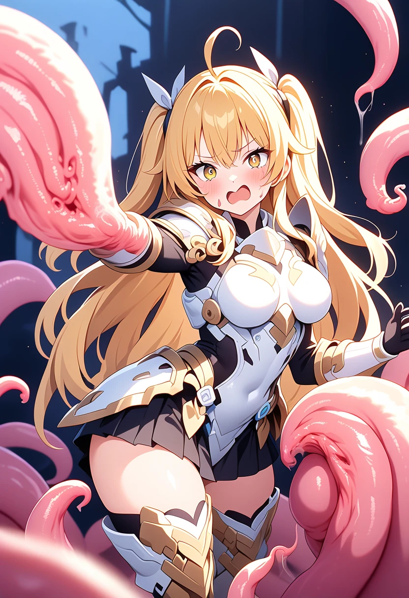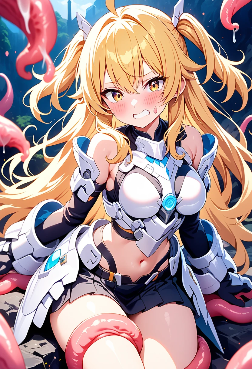 性格・ツンデレ、口が悪い。 容姿・金髪、ロング、美少女。 状況・油断して触手モンスターに捕まってしまう。ソロで来てるため誰にも助けてもらえず触手モンスターにいろんな場所から体液を吸われる。 吸われるたびにだらしない顔になる。