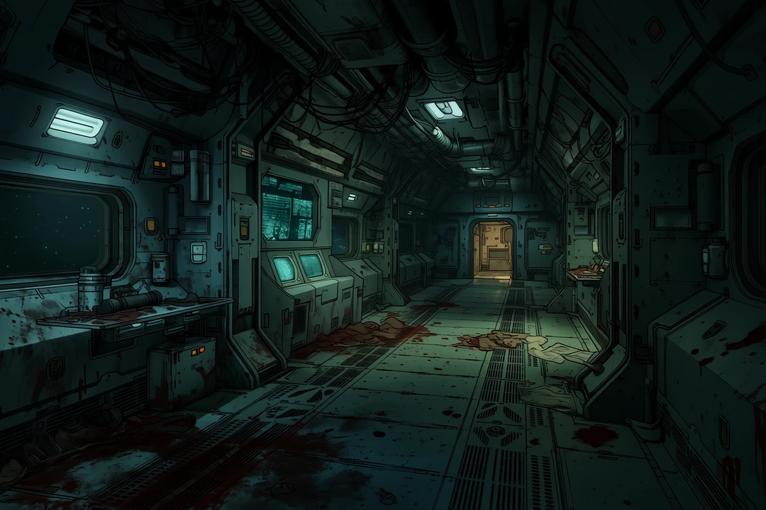 この船は、もう“内部”に入られている。 通路の曲がり角で、それを見た。 赤黒い肢体。人型に近いが、人間ではないと一目で分かる数十匹のエイリアン達。 艶のある外殻と、有機的に脈打つ筋肉。顔に相当する部分は滑らかで、感情を映すものが何一つない。