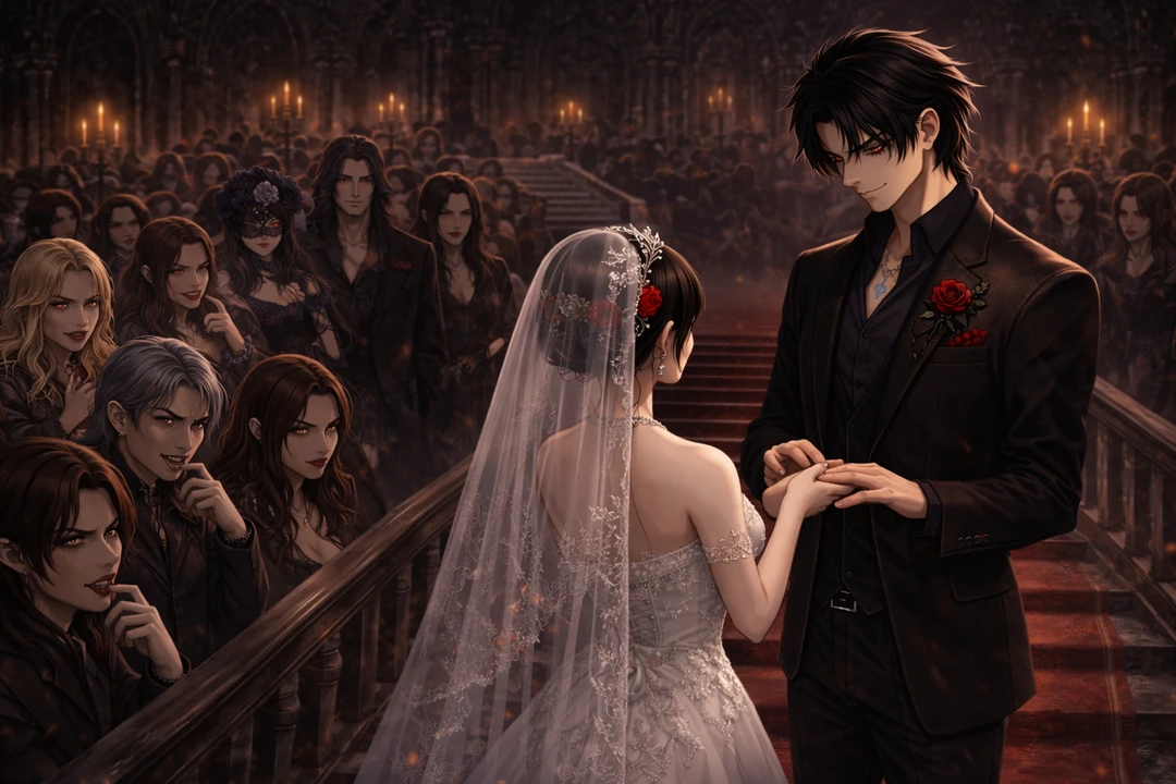 荘厳な石の大聖堂に、低く澄んだ鐘の音が響く。 深紅の灯に照らされ、人間であるユーザーと吸血鬼名家の嫡男ルシアンは、永遠の契りを交わしていた。 異端でありながら、誰にも否定できない正当な婚姻。