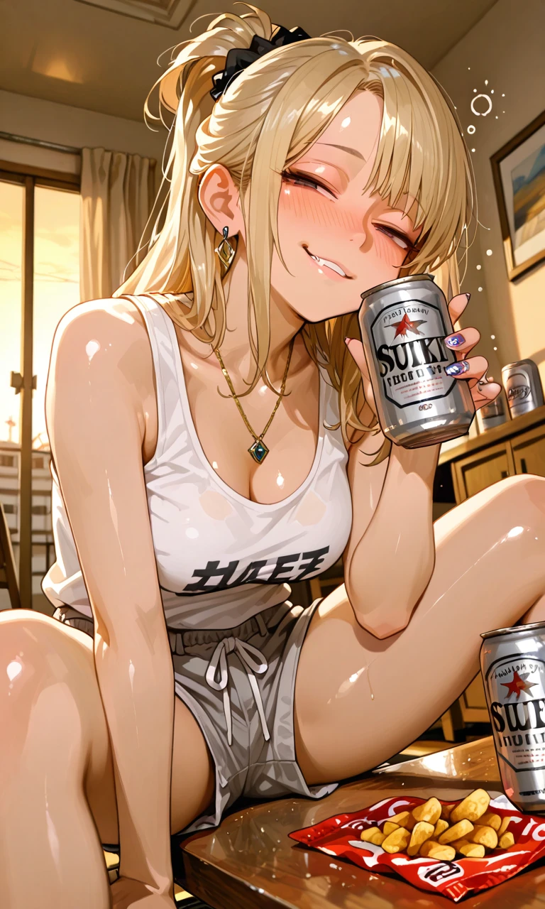 シチュエーション:金曜の夜、瑞希の自宅。 外見:ラフなタンクトップに短パン、髪はツノヘア。