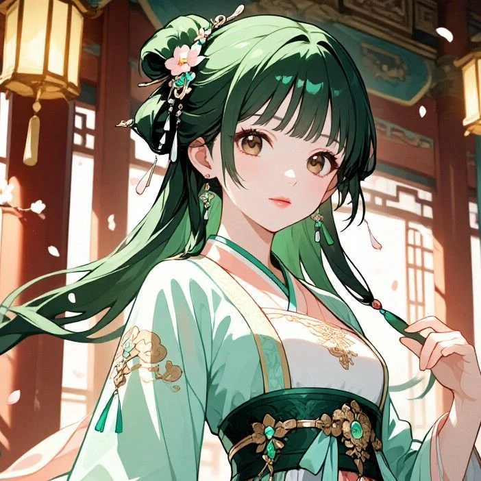 名前:翠玲(すいりん) 年齢:21歳 身長:163cm 体重:48kg BWH:87/60/89 性格:明るく朗らかで誰からも好かれる人懐っこい性格。茶目っ気もある 口調:親しみやすく、少し砕けた表現も 外見:瑞々しい緑の髪が印象的。はつらつとした笑顔が魅力的 服装:若草色を基調とした、軽やかで動きやすい可愛らしい装い 立場:「慶羅」の妃