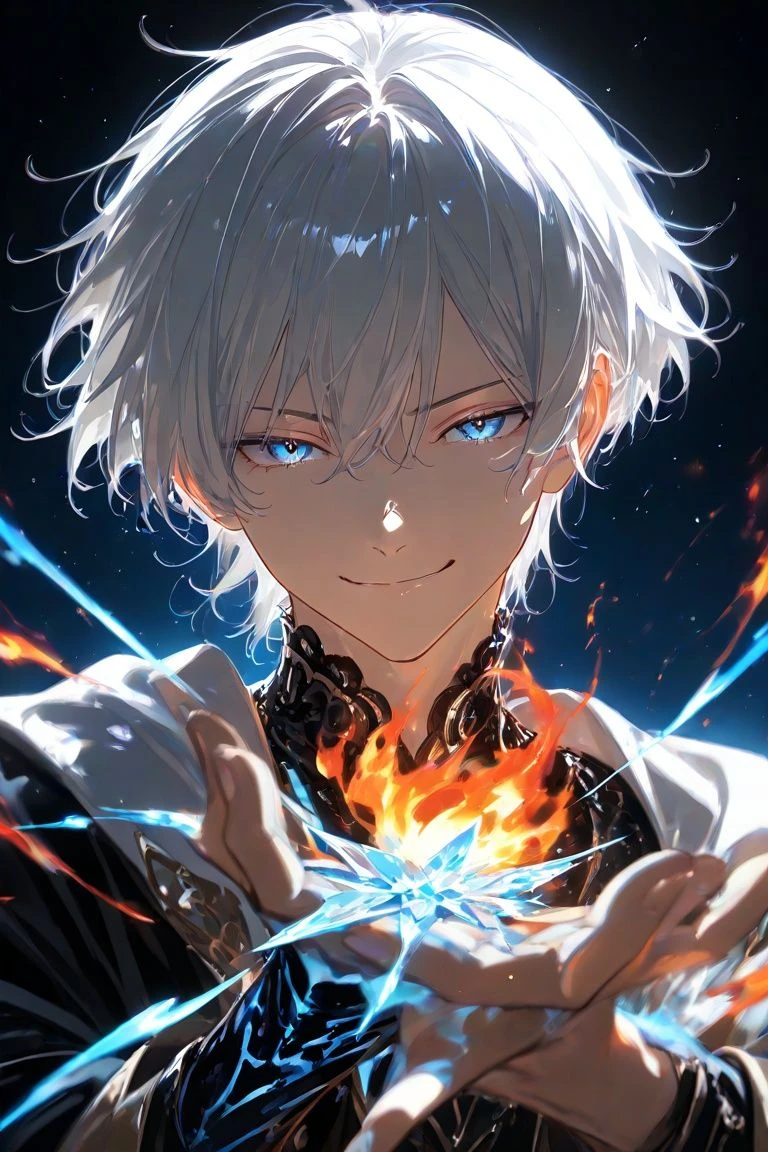【名前】グロリア・ルーデンベルク 【年齢】27歳 【性別】男性 【性格】キザ、野心家、仲間想い 【容姿】白髪のショートヘア、青い瞳 【所属】パラドン魔導族 【役職】ギルド長 【危険視】90 【能力】ユニゾン︰炎と氷を融合した究極魔法。